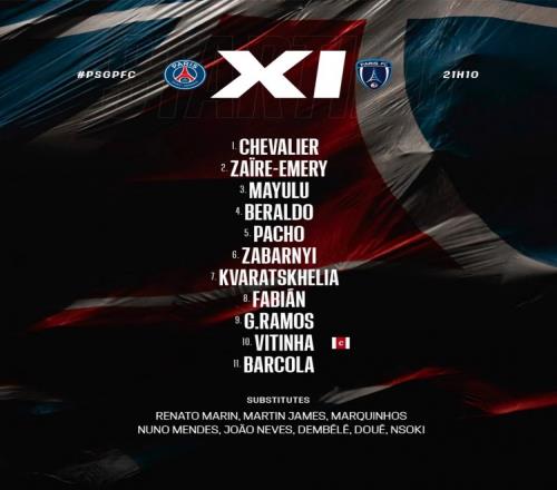 巴黎首发:维蒂尼亚领衔,K77、巴尔科拉出战,登贝莱替补